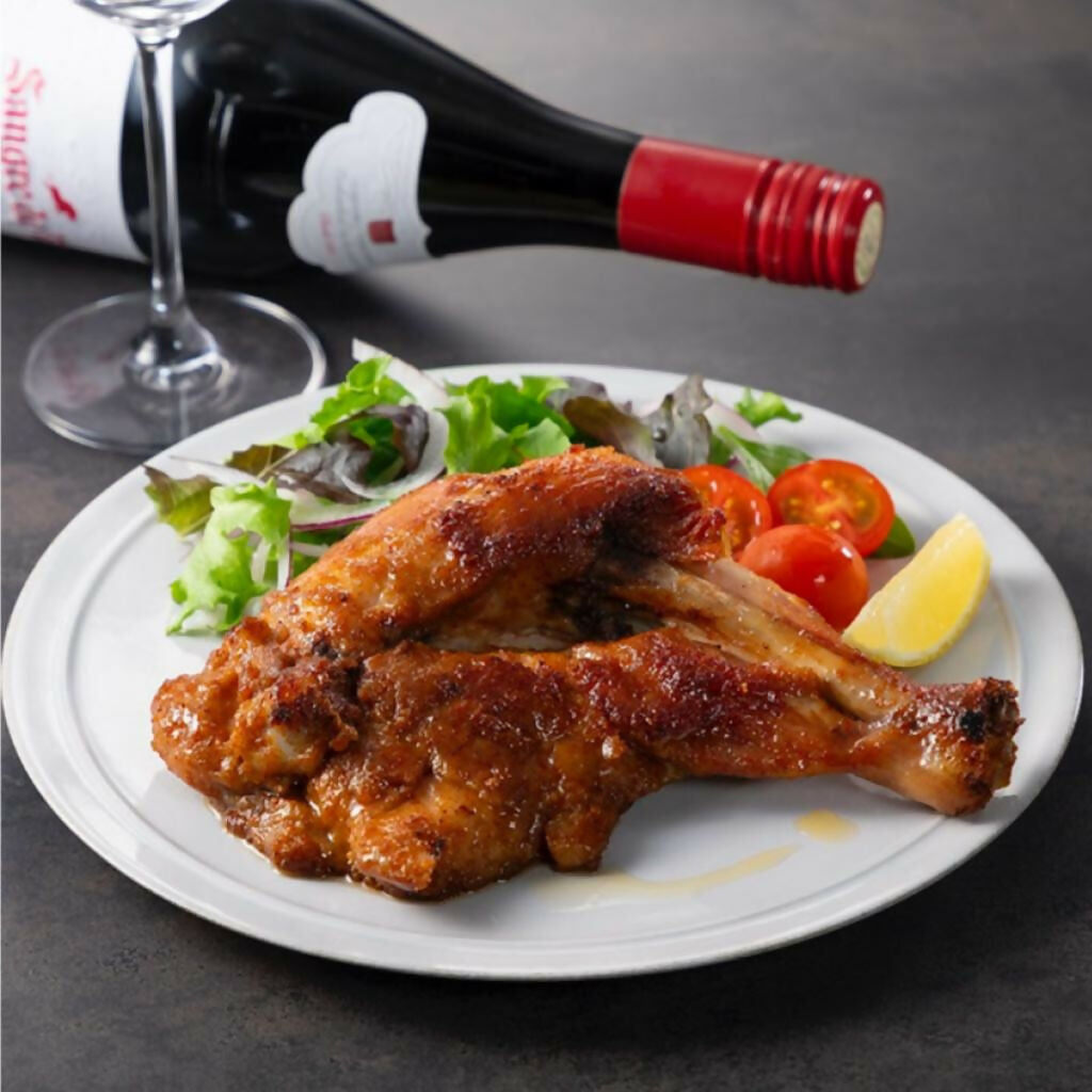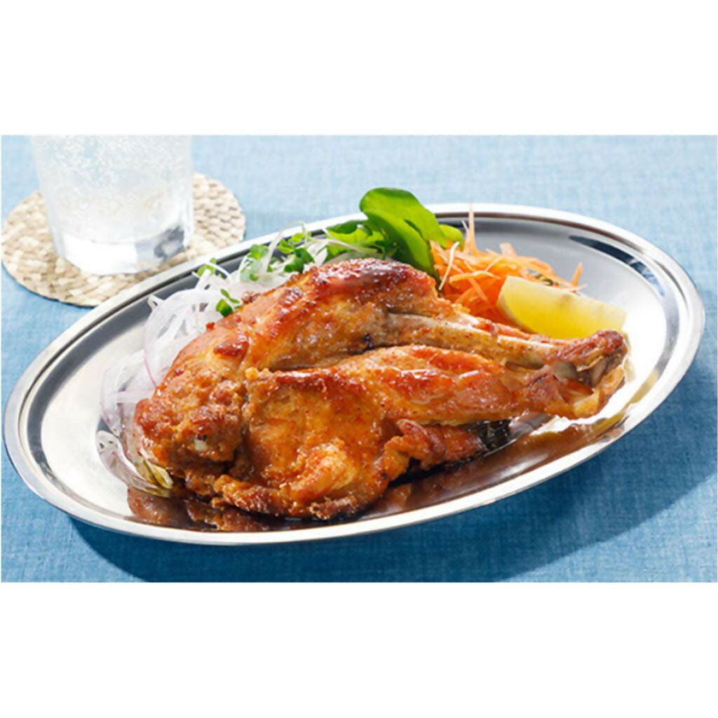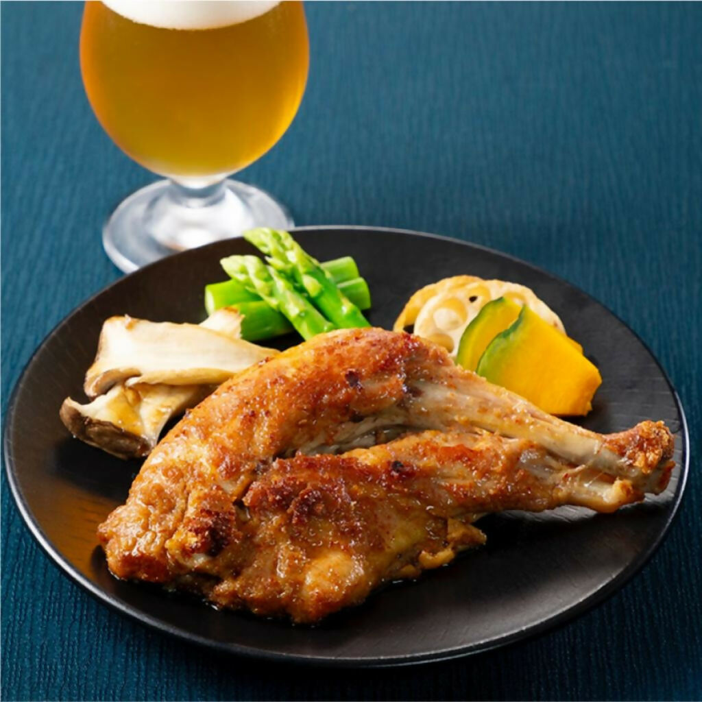 ●味付けした骨付鶏を、鶏の旨みがたっぷり詰まったチキンオイルで焼き、真空パックしたさぬき骨付鶏。焼き立てを真空パックにすることで、鶏全体に味が染み込んでいます。
